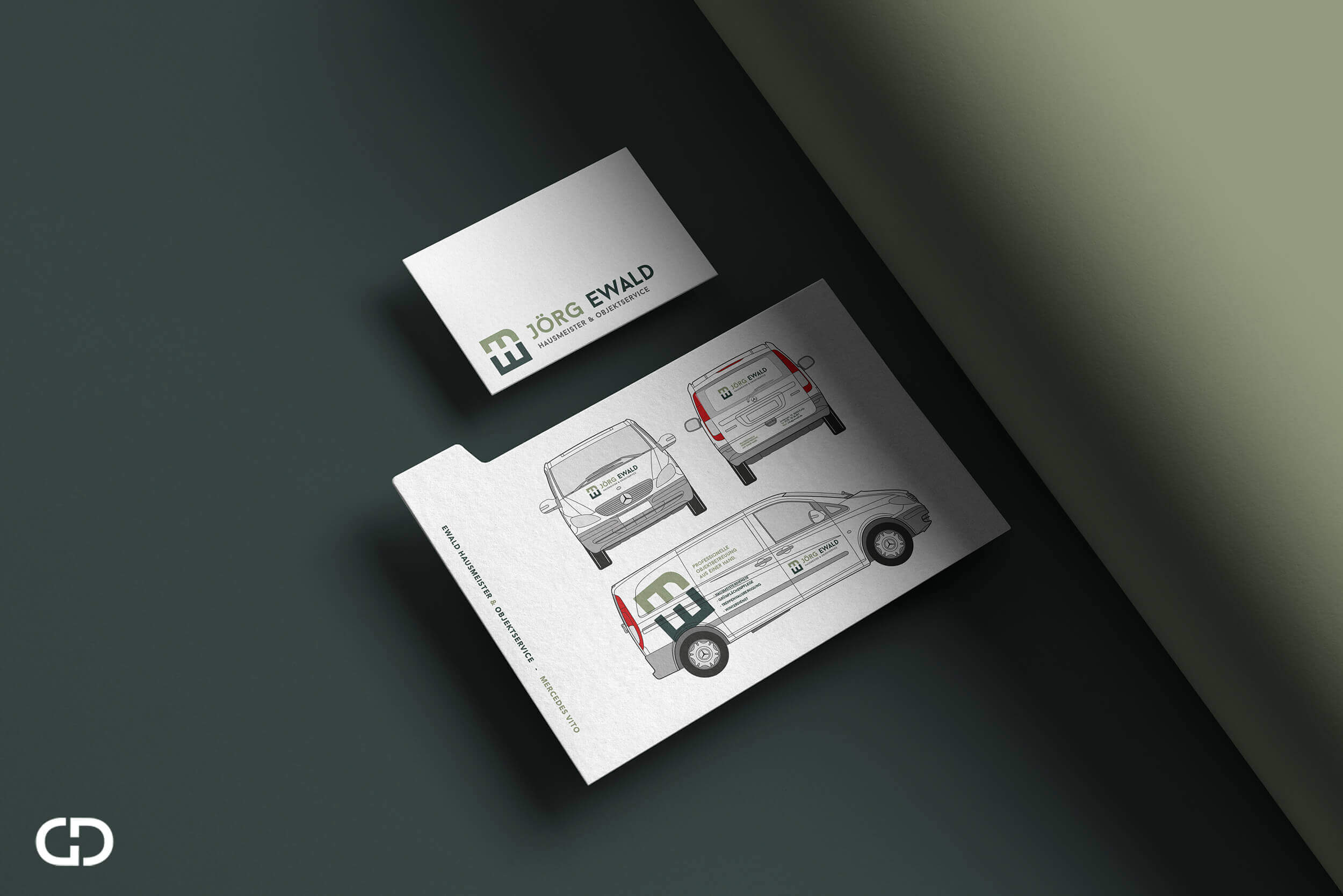 Entstanden ist ein markantes Monogramm, bei dem die Buchstaben E und J zu einer klaren, modernen Form verschmelzen. In der Mitte entstand zusätzlich der Buchstabe H, der subtil eine Verbindung zum Hausmeisterservice hergestellt. Das Logo bildet die Basis für ein stimmiges Corporate Design, das sich in Werbemitteln und in der Fahrzeugbeschriftung widerspiegelt und dem Unternehmen einen hohen Wiedererkennungswert verleiht.