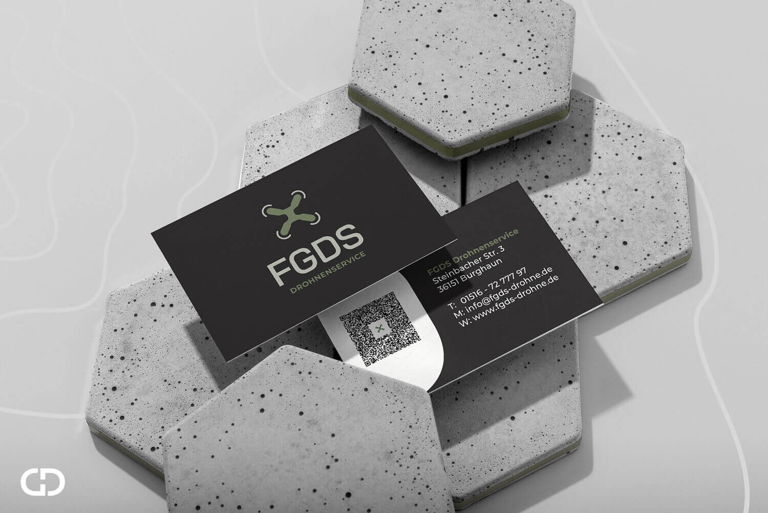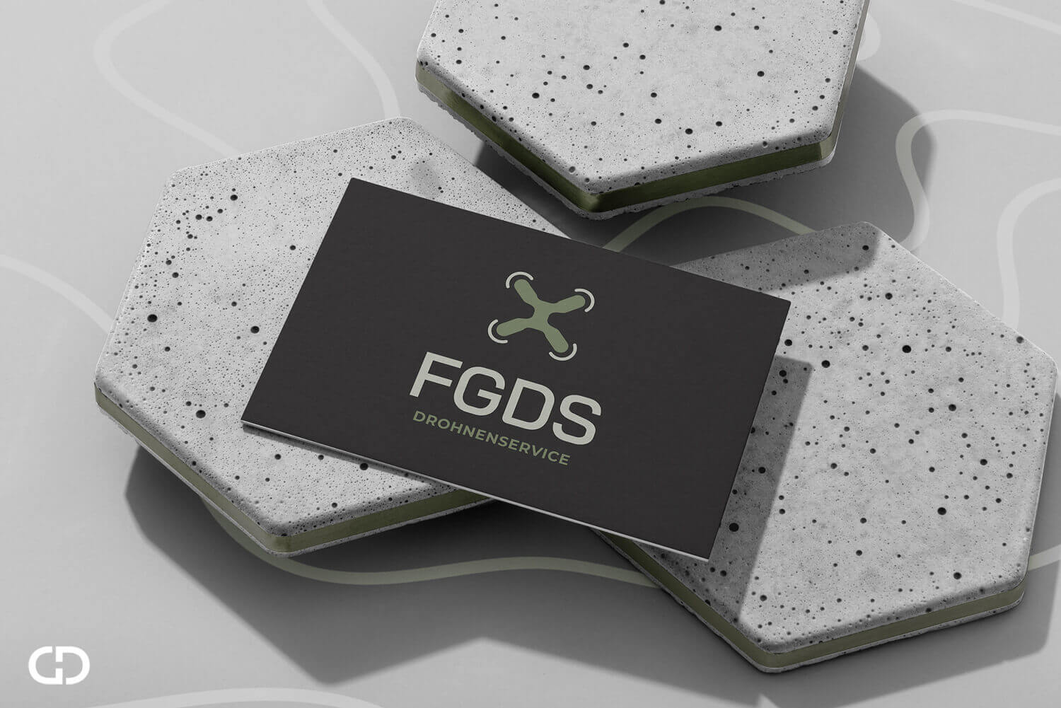 Kernpunkt war das Logo auf Basis des Akronyms FGDS und die Entwicklung eines einprägsamen Markenauftritts. Das Design sollte minimalistisch und visuell wiedererkennbar sein, mit einem harmonischen Farbsystem. Ziel war es zudem, ein Symbol zu gestalten, was FGDS im Bereich Drohnenservice klar erkennbar macht.